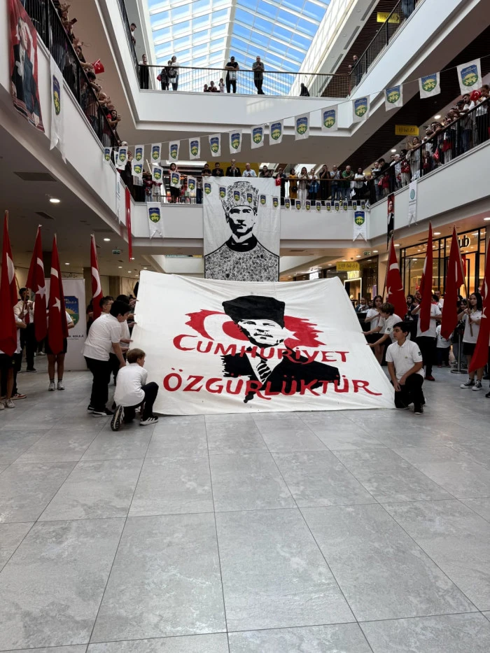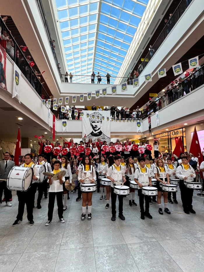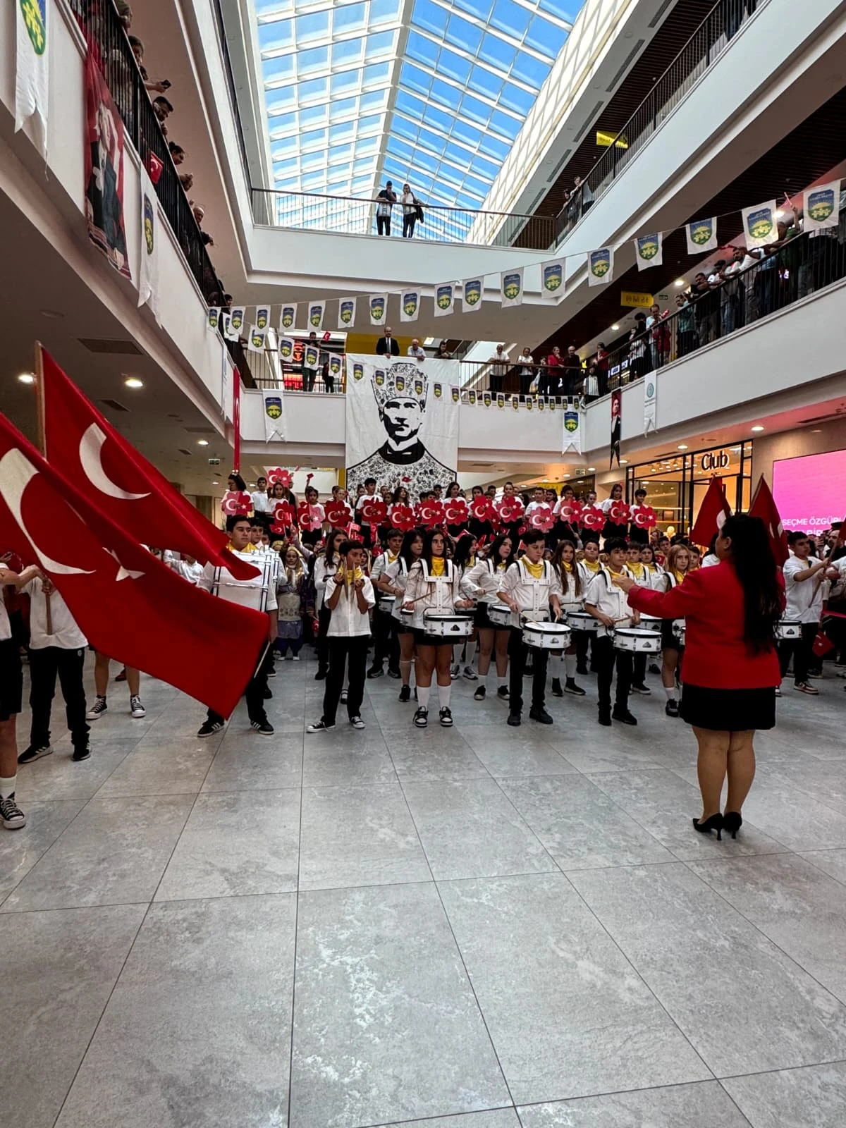 Kutlamalarin ikinci duraği ise OPS Mall Alişveriş Merkezi oldu. Burada gerçekleştirilen etkinlik, okul bandosunun marşlarla alişveriş merkezini coşkuyla inletmesiyle başladi. Ardından sahne alan öğrenci gruplari, hazirladiklari enerjik ve duygu yüklü performanslarla izleyenlere unutulmaz anlar yaşatti. Ziyaretçilerin yoğun iigi gösterdiği etkinlikte, coşku ve gurur dolu aniar yaşandi.