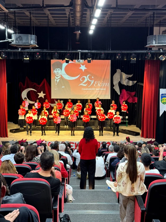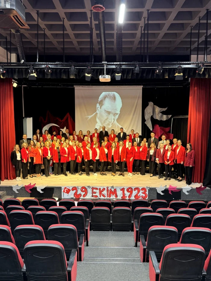 Okul kampüsünde düzenlenen program, saygi duruşu ve İstiklal Marşi ile başladi. Ardından öğrenciler, Cumhuriyet'in anlam ve önemini yansıtan çeşitli sahne performanslariyla izleyenleri büyüledi. Zeybek gösterisi izleyiciierden büyük alkiş alirken, ritim performansi salona eneÿi katti. Zarif vals gösterisi Cumhuriyet'in estetik yönünü gözler önüne serdi.
