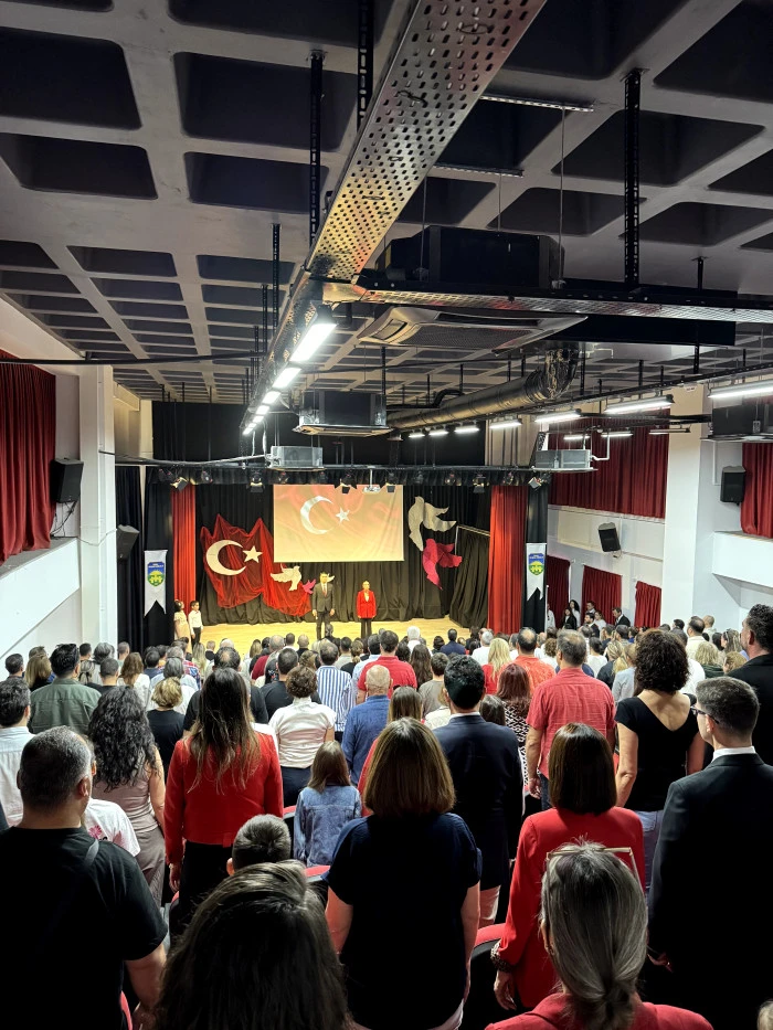 Tören sonunda öğrenciler hep bir ağizdan “Yaşasin Cumhuriyet!” diyerek salonu alkışlarla inletti.