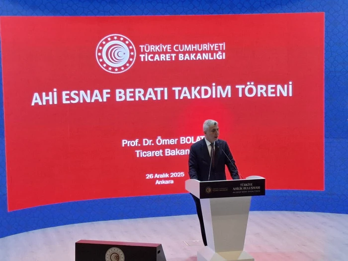 Aydın’da 2025 Yılının Ahisi seçilen oto tamircisi İsmail Gülter’e Ahi Esnaf Beratı, Ticaret Bakanı Prof. Dr. Ömer Bolat tarafından Ankara’da düzenlenen törende verildi.