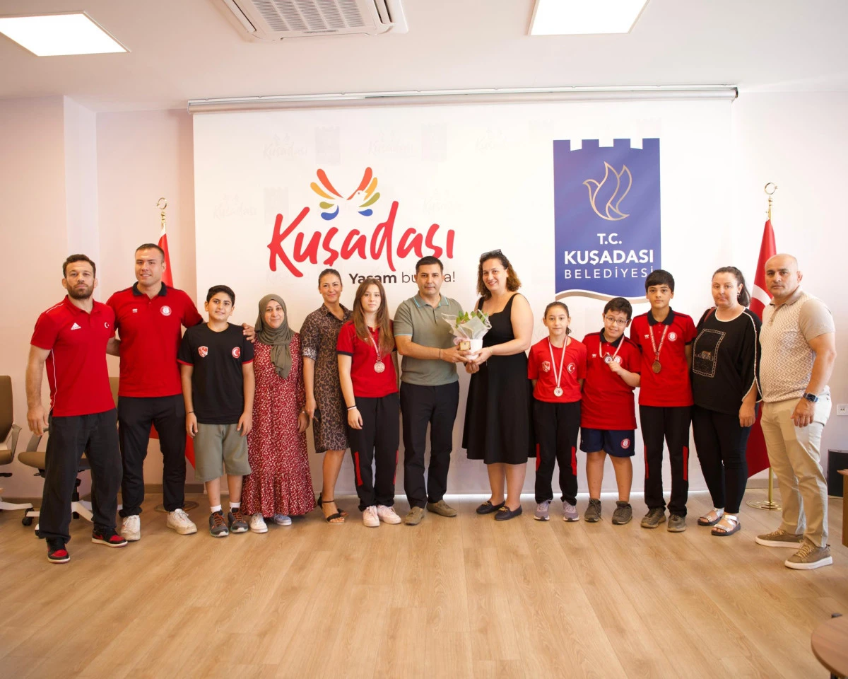 Sivas’ta düzenlenen 2025 Grekoromen Türkiye Güreş Şampiyonası’nda dereceye giren Kuşadalı sporcular, Belediye Başkanı Ömer Günel’i makamında ziyaret etti.