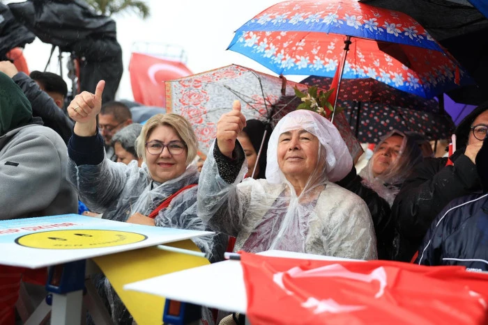 On binlerce vatandaş, Kuşadası İsmail Cem Meydanı'nda CHP liderini karşıladı. Yağmurlu havaya rağmen katılımın oldukça yoğun olduğu mitingde konuşan Özel, hukuksuz şekilde tutuklanan Kuşadası Belediye Başkanı Ömer Günel için bir kez daha adalet çağrısında bulundu. Özel'in konuşması alanı dolduran vatandaşlar tarafından sık sık alkışlar ve tezahüratlarla desteklendi.