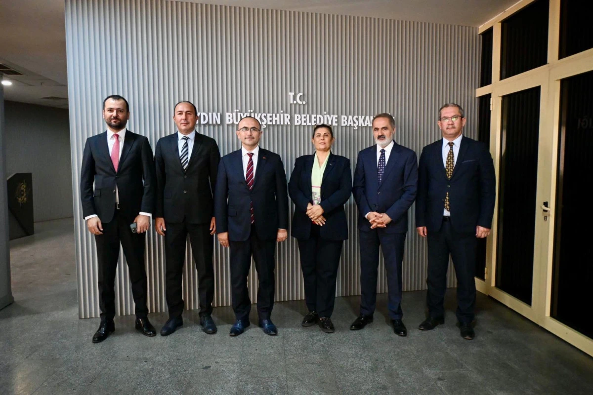 Aydın Büyükşehir Belediye Başkanı Özlem Çerçioğlu’na, Karayolları Genel Müdürü Ahmet Gülşen, Türkiye Cumhuriyeti Devlet Demiryolları Genel Müdürü Veysi Kurt ve bölge müdürlerinezaket ziyaretinde bulundu.