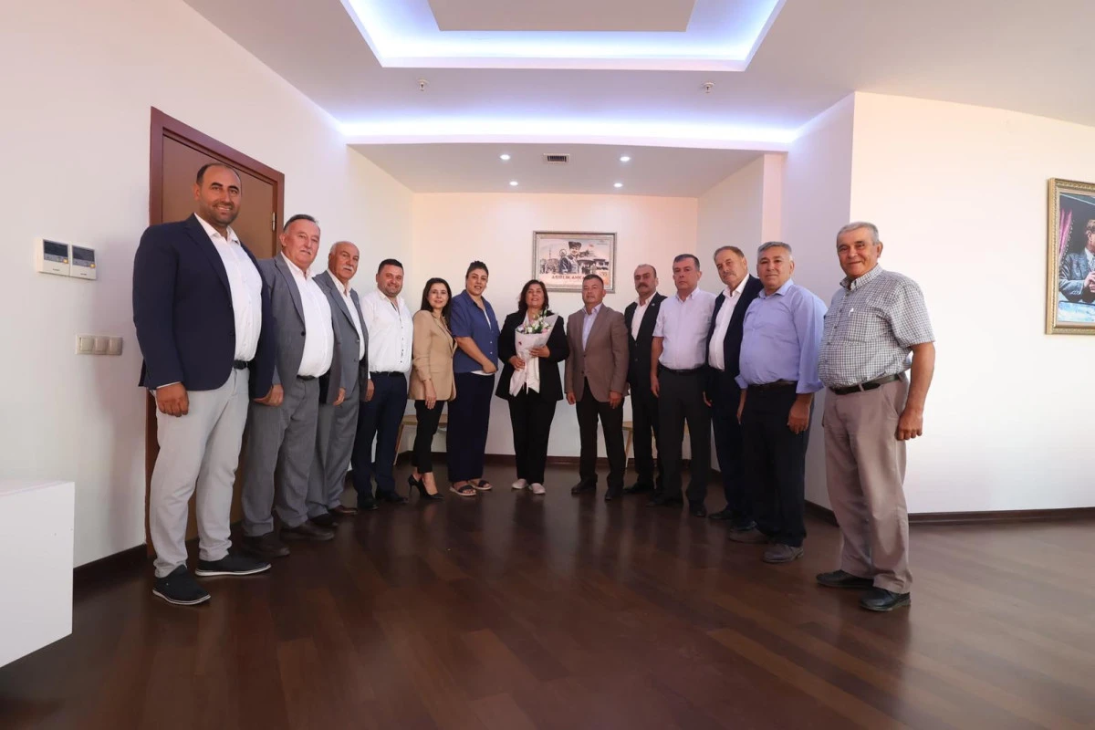 Aydın Büyükşehir Belediye Başkanı Özlem Çerçioğlu’na Türkiye Muhtarlar Derneği Aydın Şubesi Başkanı Muzaffer Ergün ve yönetimi nezaket ziyaretinde bulundu.