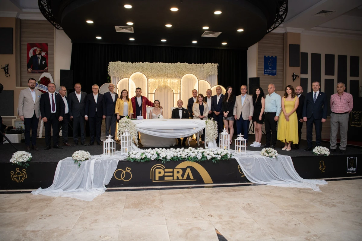 CHP Artvin Milletvekili ve aynı zamanda Parti Disiplin Kurulu Başkanı Uğur Bayraktutan’ın oğlunun nikâh töreni Cumhuriyet Halk Partili milletvekillerinin Kuşadası’nda adeta buluşmasına ev sahipliği yaptı. Mert Bayraktutan ile Cansu Gök, Kuşadası Pera Düğün Salonu’nda düzenlenen törenle hayatlarını birleştirdi. Nikâhı, Kuşadası Belediye Başkanı Ömer Günel kıyarken, CHP’li milletvekilleri Kuşadası’na adeta çıkarma yaptı.