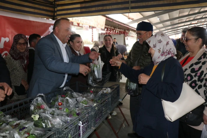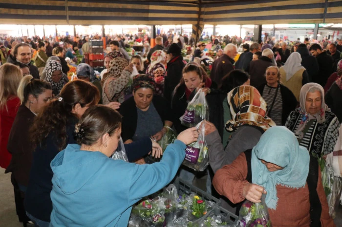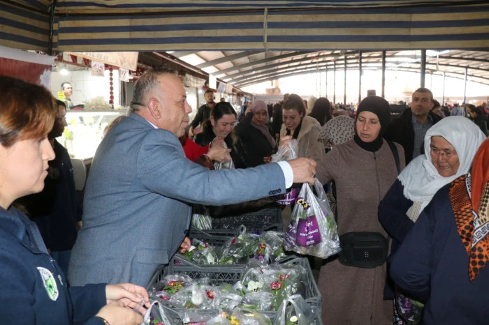 8 Mart Dünya Emekçi Kadınlar Günü’nün bu yıl pazar gününe denk gelmesi nedeniyle, Bozdoğan Belediyesi tarafından ilçe merkezinde kurulan Salı Pazarı’nda kadınlara canlı çiçek dağıtımı gerçekleştirildi.