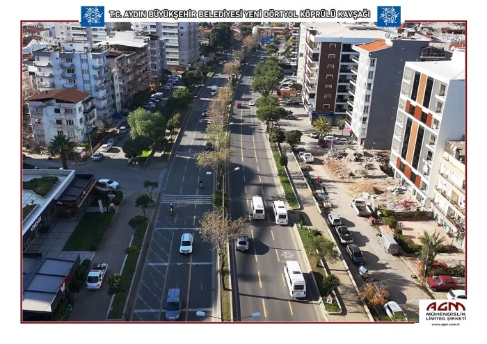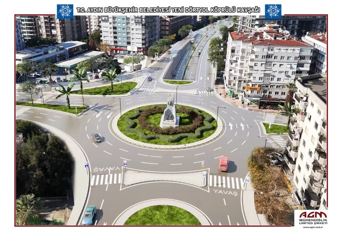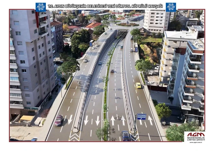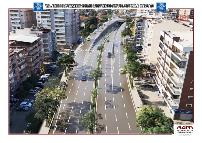 Aydın Büyükşehir Belediyesi, kentin en yoğun noktalarından biri olan Yeni Dörtyol Kavşağı’nda trafiği rahatlatacak projeyi hayata geçiriyor. Proje kapsamında Muğla, Denizli ve İzmir istikametleri ile Adnan Menderes Bulvarı’nın şehir içi yükünü hafifletecek, 1000 metre uzunluğunda modern bir köprülü kavşak inşa edilecek.