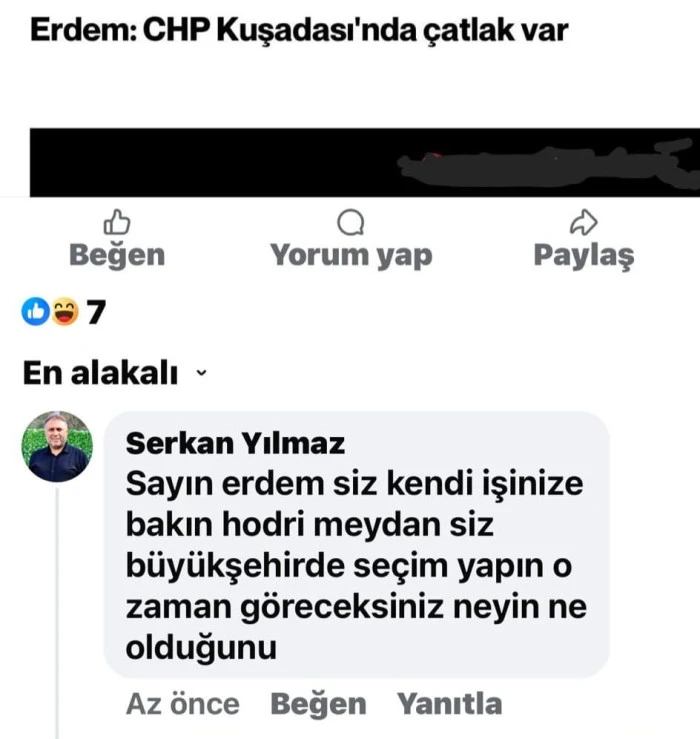 Bu sözlere bir tepki de Cumhuriyet Halk Partisi Aydın il Başkan yardımcısı Serkan Yılmaz'dan geldi.