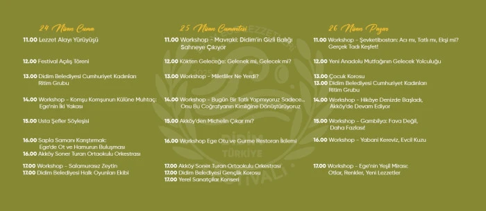 Didim Belediyesi tarafından 24–25–26 Nisan 2026 tarihlerinde gerçekleştirilecek festival, bu yıl ikinci kez kapılarını açmaya hazırlanıyor. Genişletilen programı ve zengin içeriğiyle dikkat çeken festivalin, Ege mutfağının kültürel mirasını daha geniş kitlelere tanıtması hedefleniyor.