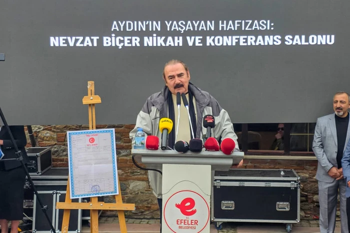 “Hayatını kaybeden evlatlarımızın ve öğretmenimizin kederli ailelerine ve eğitim camiamıza başsağlığı diliyorum. Mekânları cennet olsun. Konuşmama başlamadan önce, geçtiğimiz iki gün içerisinde Şanlıurfa ve Kahramanmaraş’ta meydana gelen, hepimizi derin bir yasa boğan olaylarda hayatını kaybeden öğretmen ve öğrencilerimize Allah’tan rahmet; kederli ailelerine ve eğitim camiamıza başsağlığı diliyorum. Mekânları cennet olsun. Bugün burada Efeler’in hafızasına, kültürel mirasına ve halkın öz malına sahip çıkmak için toplandık. Anlamlı mücadelemizde bizleri yalnız bırakmayan, Efeler halkının direniş hareketine destek veren, katılımlarıyla bizleri onurlandıran sizlere çok teşekkür ederim. Toplumun her kesiminden, görüş ya da yaşam tarzı farklılığı gözetmeden yüzlerce kişinin burada olması bizi hiç şaşırtmadı. Çünkü Nevzat Biçer Nikâh ve Konferans Salonu, bu kentin en önemli ortak değerlerinden birisidir. Aydın Vakıflar Bölge Müdürlüğü; yıllardır belediyemiz eliyle bir kültür yuvasına dönüştürülen bu tarihi yapıyı, "tescil" adı altında Ayşe Hanım Binti Mehmed Paşa Bin Derviş Vakfı üzerine geçirmiştir. Daha da vahimi; bu süreç, devlet ciddiyetine yakışmayacak bir gizlilikle yürütülmüştür. Belediyemize tek bir resmi bilgi verilmemiş; halkın malının nasıl el değiştirdiğini kurumlardan değil, bir haber sitesinden öğrenmek zorunda bırakılmışızdır.” dedi.