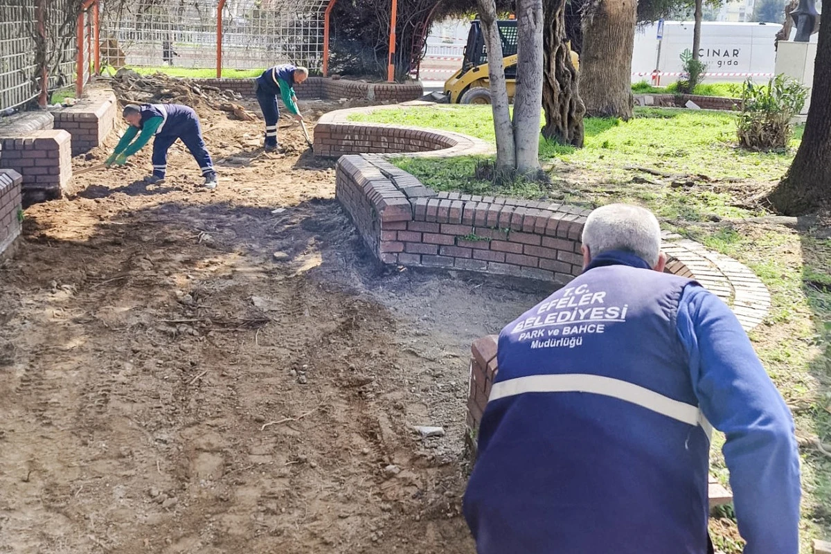 Göreve geldiği günden bu yana kentin çehresini değiştirecek dokunuşlara imza atan Efeler Belediye Başkanı Anıl Yetişkin, kentteki parkları modern yaşam alanlarına dönüştürmeye devam ediyor. Gül Esin Parkı’nda gerçekleştirilen kapsamlı yenileme çalışmaları kapsamında, yıllardır müdahale edilmeyen dev palmiye ve çınar ağaçları titizlikle budanarak sağlıklı bir görünüme kavuşturuldu. Zemin döşemeleri tamamen yenilenen parkta, vatandaşların konforu için yerleştirilen yeni ahşap banklar ve dikilen rengârenk çiçekler, Gül Esin Parkı’nın çehresini değiştirdi.