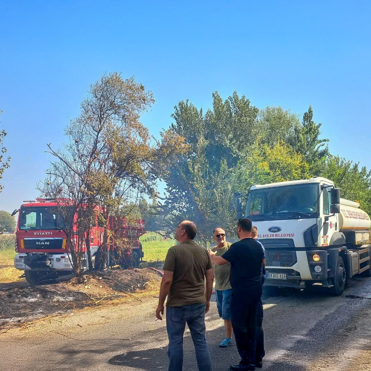 Olay, Kocagür Mahallesi’nde temizlik çalışmaları sırasında meydana geldi. Bölgede çalışma yürüten Efeler Belediyesi Temizlik İşleri Müdürlüğü ekipleri, bir anda yükselen alevleri fark etti. Hiç vakit kaybetmeden yangın bölgesine yönelen ekipler, canla başla müdahalede bulundu. Yapılan hızlı müdahale sayesinde yangın yerleşim alanlarına ulaşmadan ve büyümeden söndürüldü.