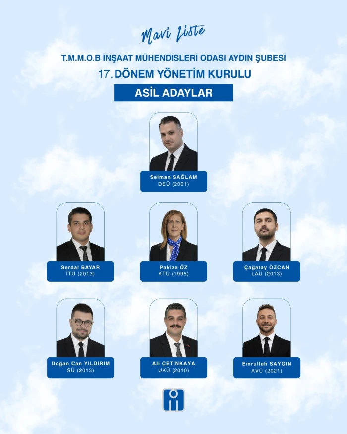 İnşaat Mühendisleri Odası (İMO) Aydın Şubesi yaklaşan seçimler öncesinde yönetim kuruluna aday olduğunu açıkladı.