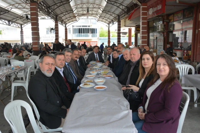 Atça esnaf ve sanatkârlar Odası öncülüğünde Atça Kapalı Pazar Yeri’nde düzenlenen hayır yemeğine; AYESOB Yönetim Kurulu Üyeleri Murat Elgin, Ünsal Adak, Olcay Akyıldız, Umurlu Esnaf ve Sanatkârlar Odası Başkanı Cengiz Mutlu, Koçarlı Esnaf ve Sanatkârlar Odası Başkanı Hüseyin Yaman, Kuyucak Esnaf ve Sanatkârlar Odası Başkanı Mustafa Ali Kocadağ, Pamukören Esnaf ve Sanatkârlar Odası Başkanı Mehmet Tezcan, Nazilli Fırıncılar Odası Başkanı Mahmut Tekin, Nazilli Elektrikçiler Odası Başkanı Mehmet Akyol, Nazilli Terziler Odası Başkanı Murat Şanal, Nazilli Manavlar Odası Başkanı Necmettin Karakaya, Nazilli Marangoz ve Ağaç İşleri Esnaf ve Sanatkârlar Odası Başkanı Hüseyin Bıçakçı, Nazilli Şoförler ve Otomobilciler Odası Başkanı Mehmet Üstaş, Atça Esnaf ve Sanatkârlar Odası Başkanı İsa Durak, İncirliova Esnaf ve Sanatkârlar Odası Başkanı Yasin Akdağ, Aydın Tamirciler Odası Başkanı Hasan Eyefçi ve AYESOB Genel Sekreteri Banu Taşçı katıldı.