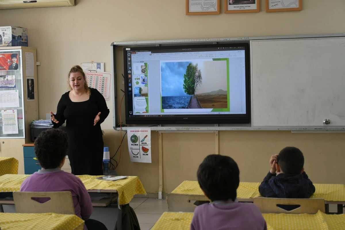 Çevre ve Geri Dönüşüm Eğitimi’nin 8’incisine Karaova Mahallesi’nde bulunan Reşat Nuri Güntekin İlkokulu ev sahipliği yaptı. Özellikle küçük yaşta çevre farkındalığı oluşturmayı amaçlayan eğitim programında, ilkokul ikinci sınıf öğrencilerine Kuşadası Belediyesi İklim Değişikliği ve Sıfır Atık Müdürlüğü Eğitim Sorumlusu Derya Tezcan tarafından günlük yaşamda çevrenin nasıl korunacağı hakkında çeşitli bilgiler uygulamalı olarak aktarıldı. Çevre kirliliğinin nedenleri, doğaya verilen zararlar ve geri dönüşümün önemi üzerinde de durulan eğitimde çocuklar özellikle ‘sıfır atık’ yönetimi konusunda bilinç kazandı.