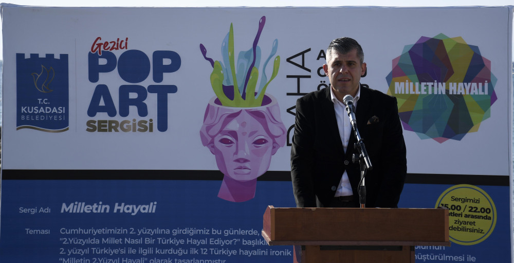 Türkiye’de yapılan kamuoyu araştırma sonuçlarına dayanarak hazırlanan ve Cumhuriyetin 100. yıl kutlamaları kapsamında, ‘2. Yüzyılda Nasıl Bir Türkiye Hayal Ediyorsunuz?’ sorusunun karşılığına verilen 12 cevabın, ironik ve sanatsal tasarımlarla anlatıldığı ‘Milletin Hayali’ isimli gezici pop-art sokak sergisi Kuşadası’nda açıldı.