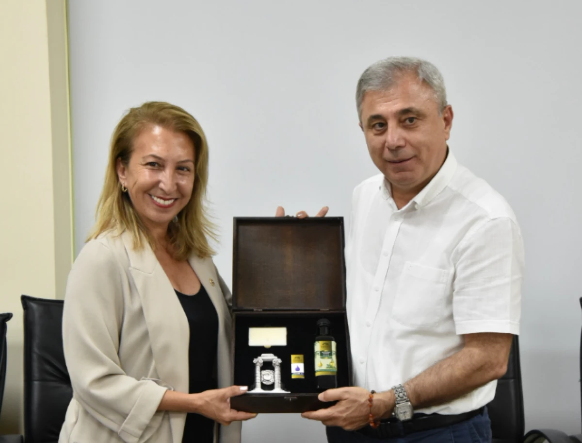 Başkan Erbaş Milletvekili Dericiye Odanın basımını üstlendiği “Yoran Didim’in Kayıp Köyü” ve “Didim Tarih-Kültür-Turizm” kitaplarını, Didim Sektörel Gelişim Stratejileri Sonuç Raporu ile Didim’in yöresel ürünlerinden oluşan hediyeler takdim etti.