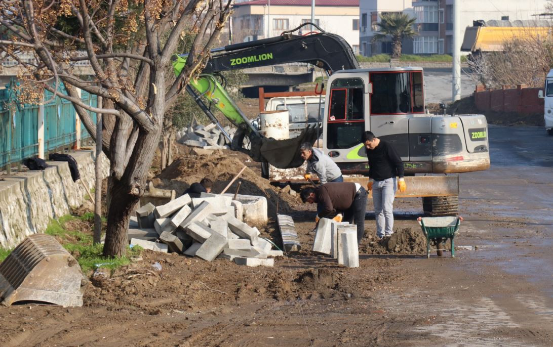 Çalışmalar kapsamında kenar bordür döşeme çalışmaları gerçekleştirilerek yayaların güvenle ulaşım sağlayabileceği yeni bir alan oluşturuldu.