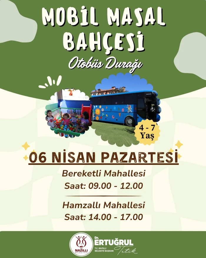 Nazilli Belediyesi tarafından özel olarak tasarlanan mobil oyun otobüsü, 6-10 Nisan tarihleri arasında ilçenin farklı mahallelerinde çocuklarla buluşacak.