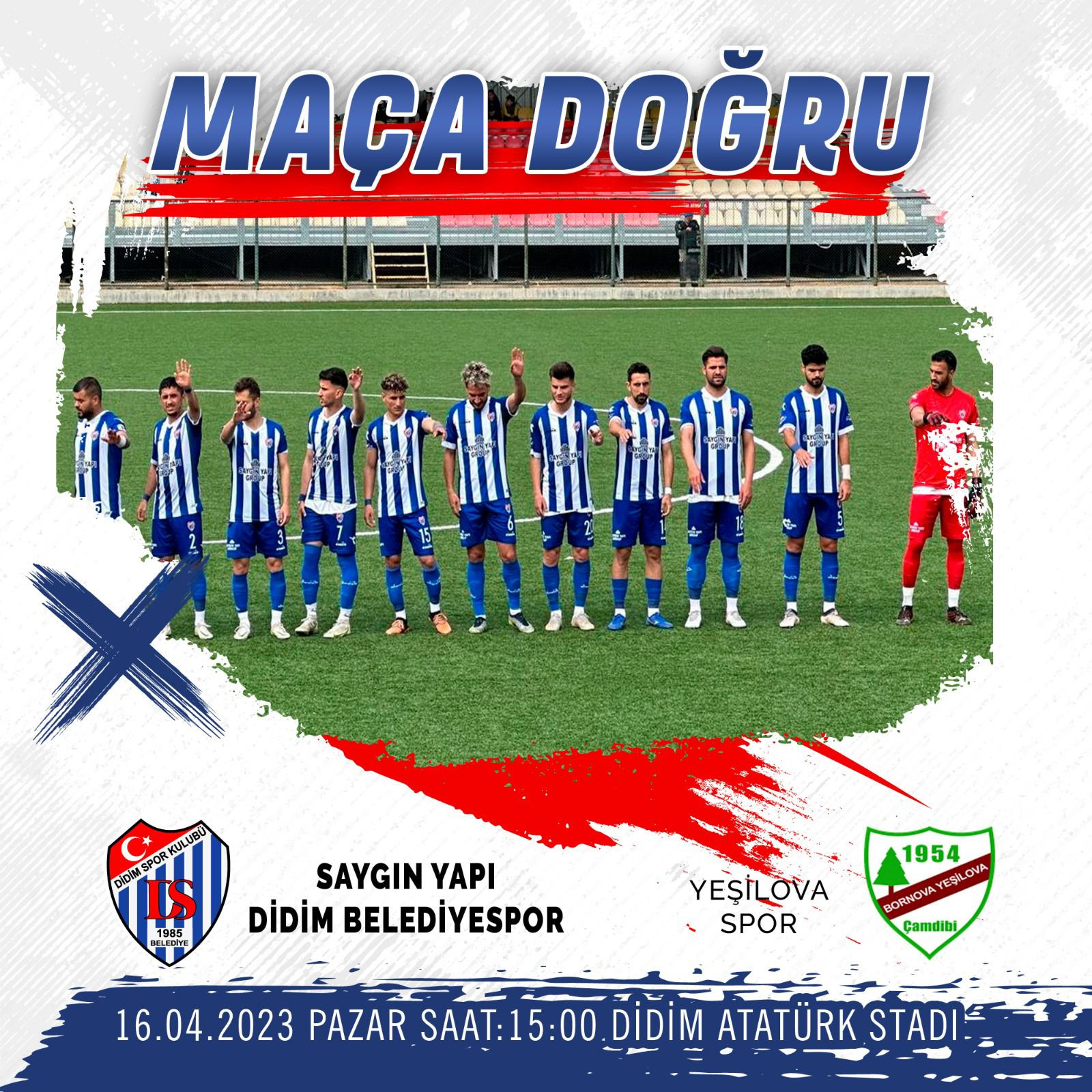 2022-2023 Sezonu Bölgesel Amatör Lig (BAL) 9. Grup 26. Haftada Saygın Yapı Didim Belediye spor – Yeşilova Spor ile 16 Nisan 2023 Pazar günü Didim Atatürk Saat:15.00’de karşı karşıya gelecek. #DİDİM